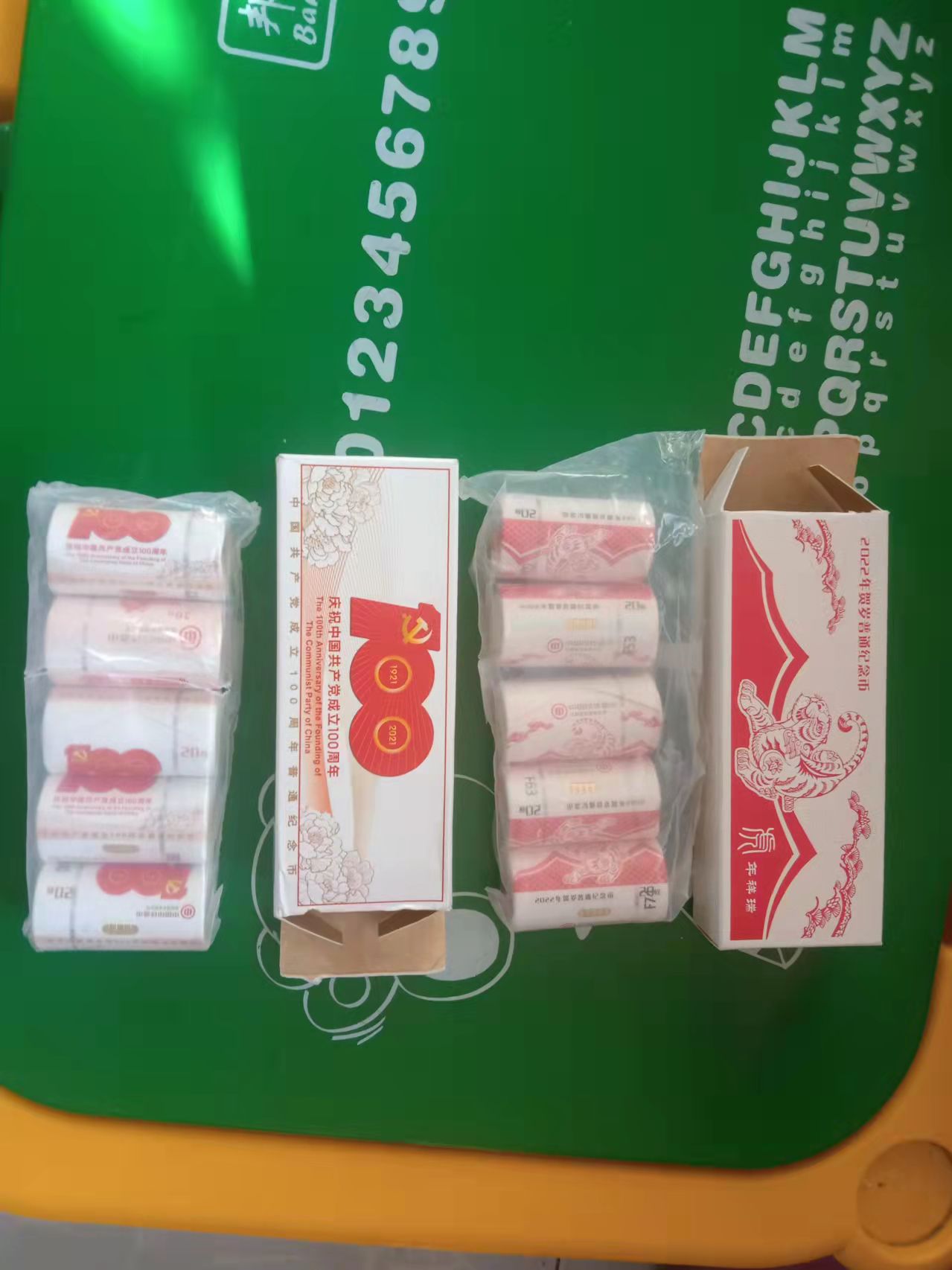 出售二虎、建党百年各一银行开盒,二虎18元每枚,