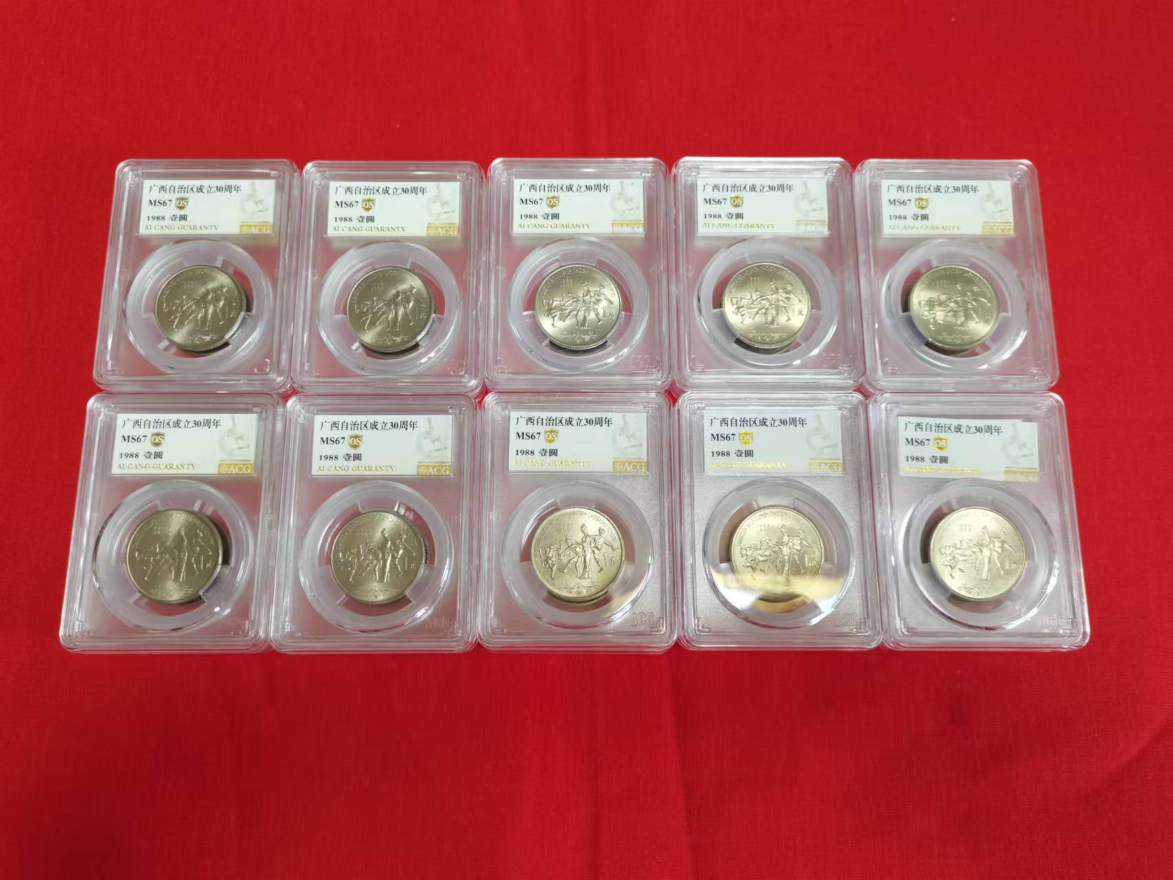 出售广西纪念币(爱藏金标OS67分)共计10枚 每枚215元。
