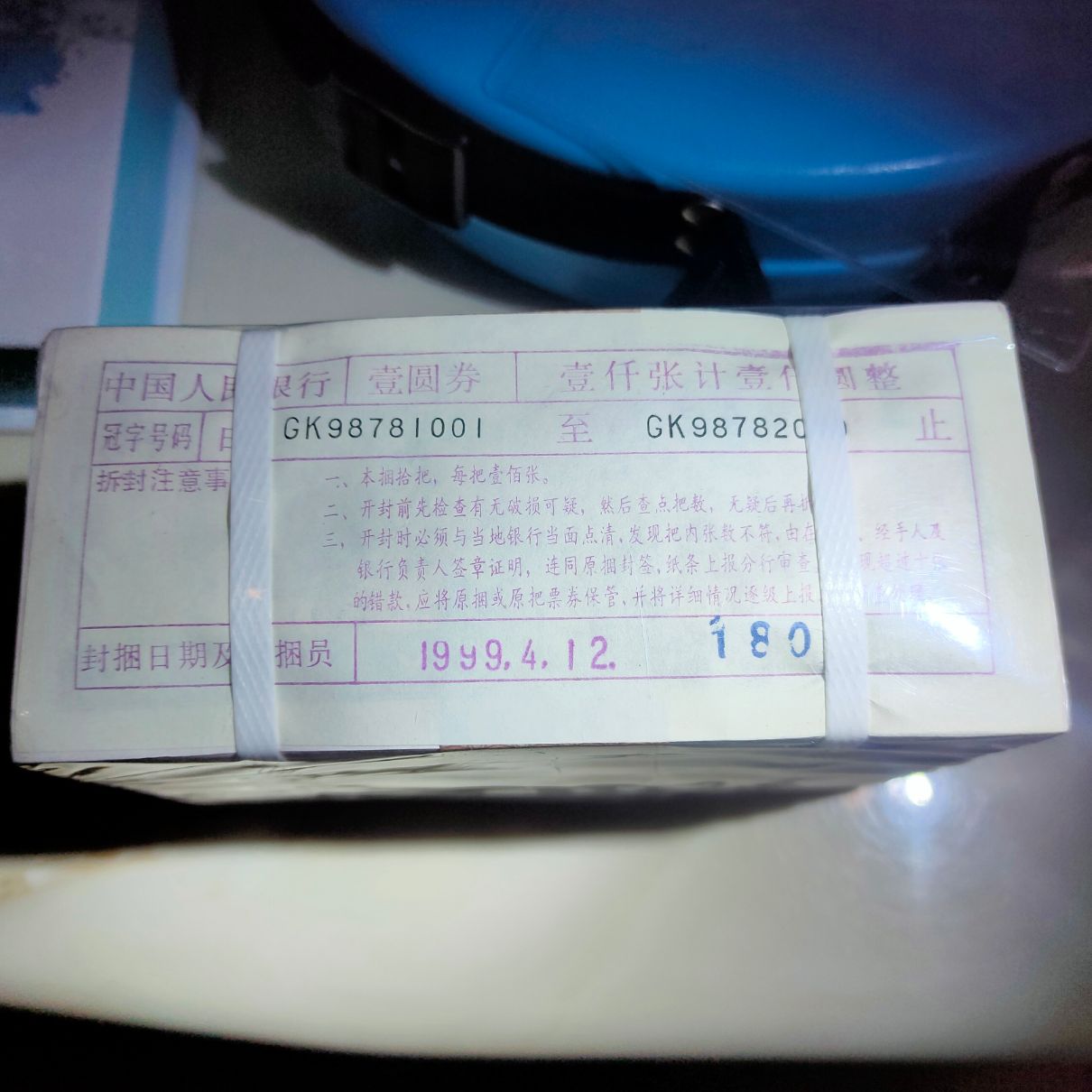 如图,961大号无4一捆,灯下无斑,底面袋子有个脏点,不是币问题,售价5300