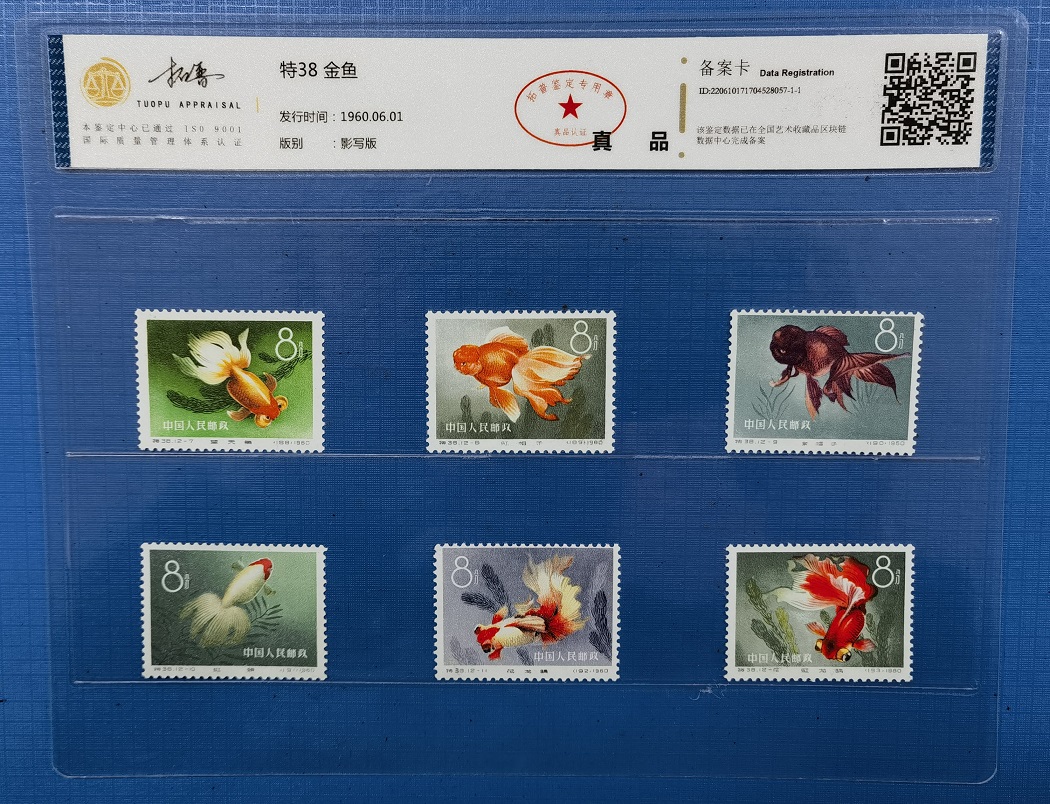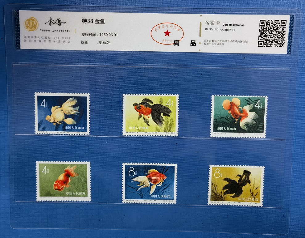卖特38金鱼一套:整套无胶,都是原票,票色很棒。按裸票价,低售2880元包邮