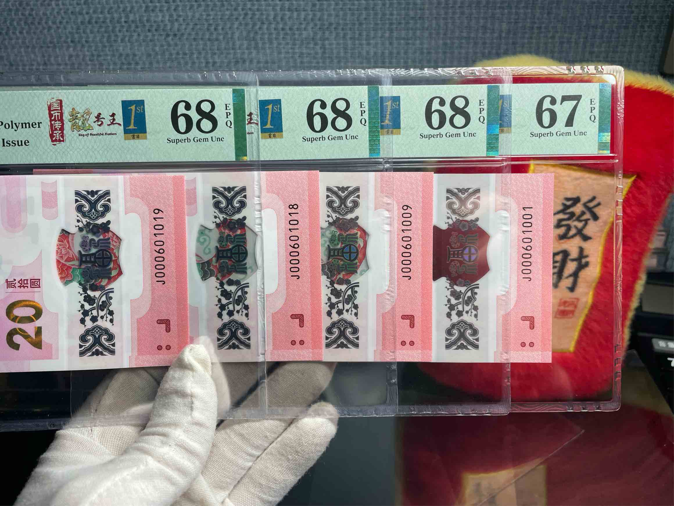 蛇钞小司令016组合二枚,PMG68分000601001售1480元000601006已售000601008已售000601009已售000601016售1980元000601018已售000601019已售