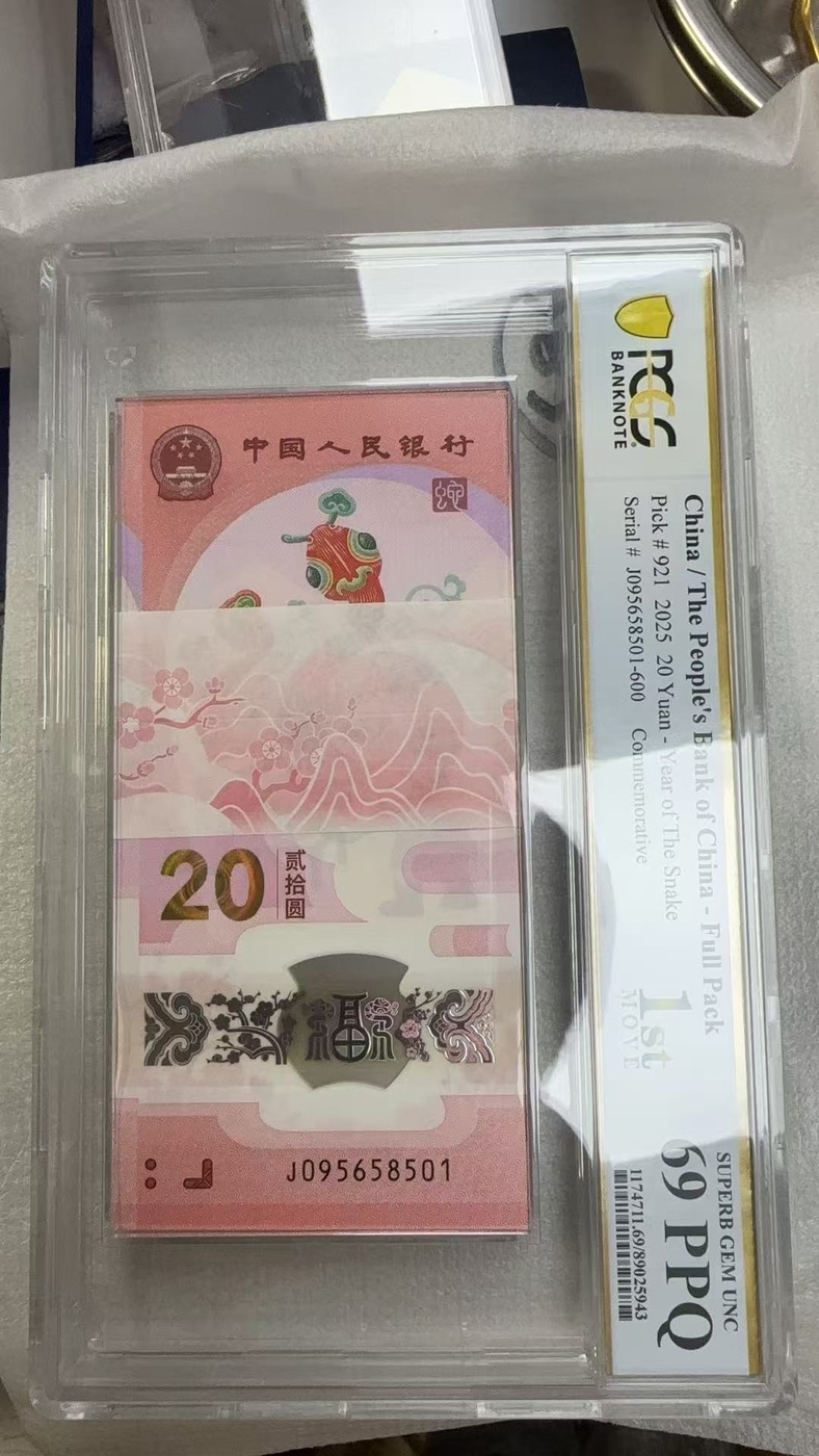 pcgs69分金马王蛇钞一刀 全球最权威的评级机构 首日标 全满号 九五至尊开头 可遇不可求