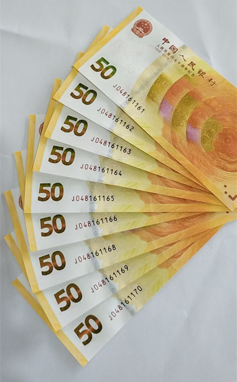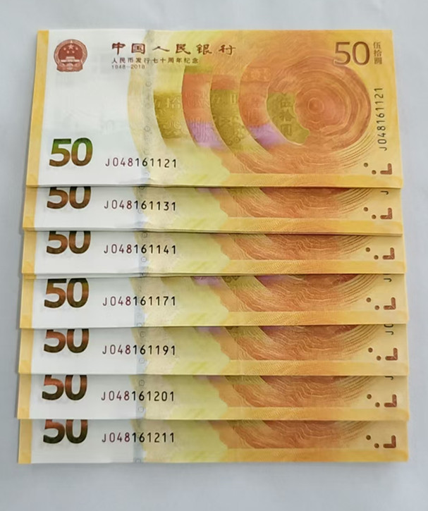 70钞滚刀100张。 号码048161118-048161220. 跳3个号:尾55、67、84. 有7个标十(见一图)。30张散连张。