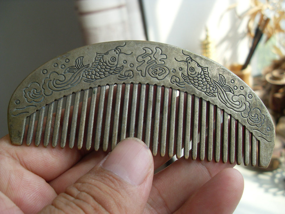 稀少经典的【双鱼送福】老铜梳子!!