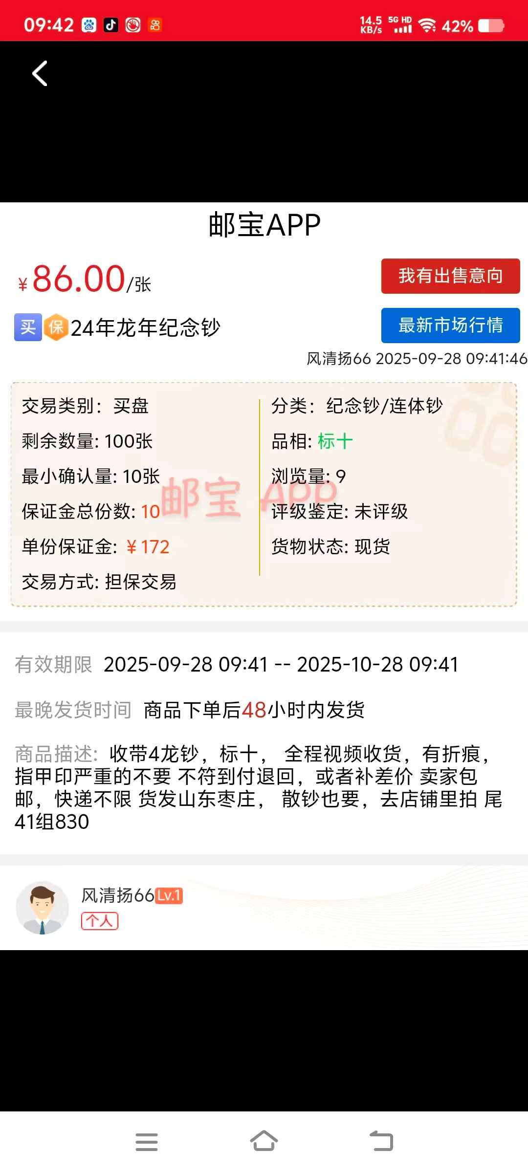 → 收2024年龙钞,带4标十,860元/组