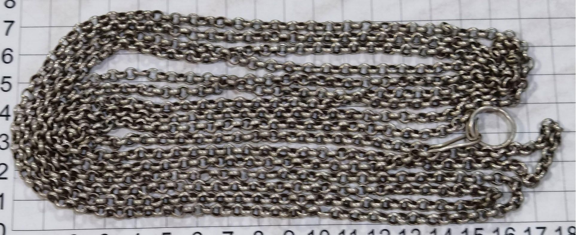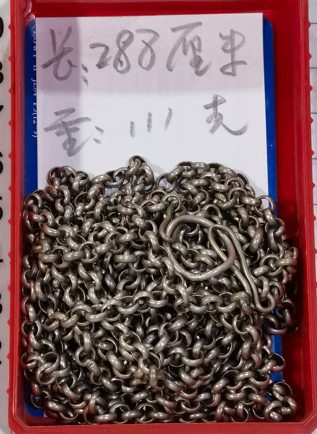 老银链111克,长288厘米,保真包老,全品如图,基本按当今银价出,暂定1200元包邮。如银价有大的变动。价位要有所调整。请买家电联确认!