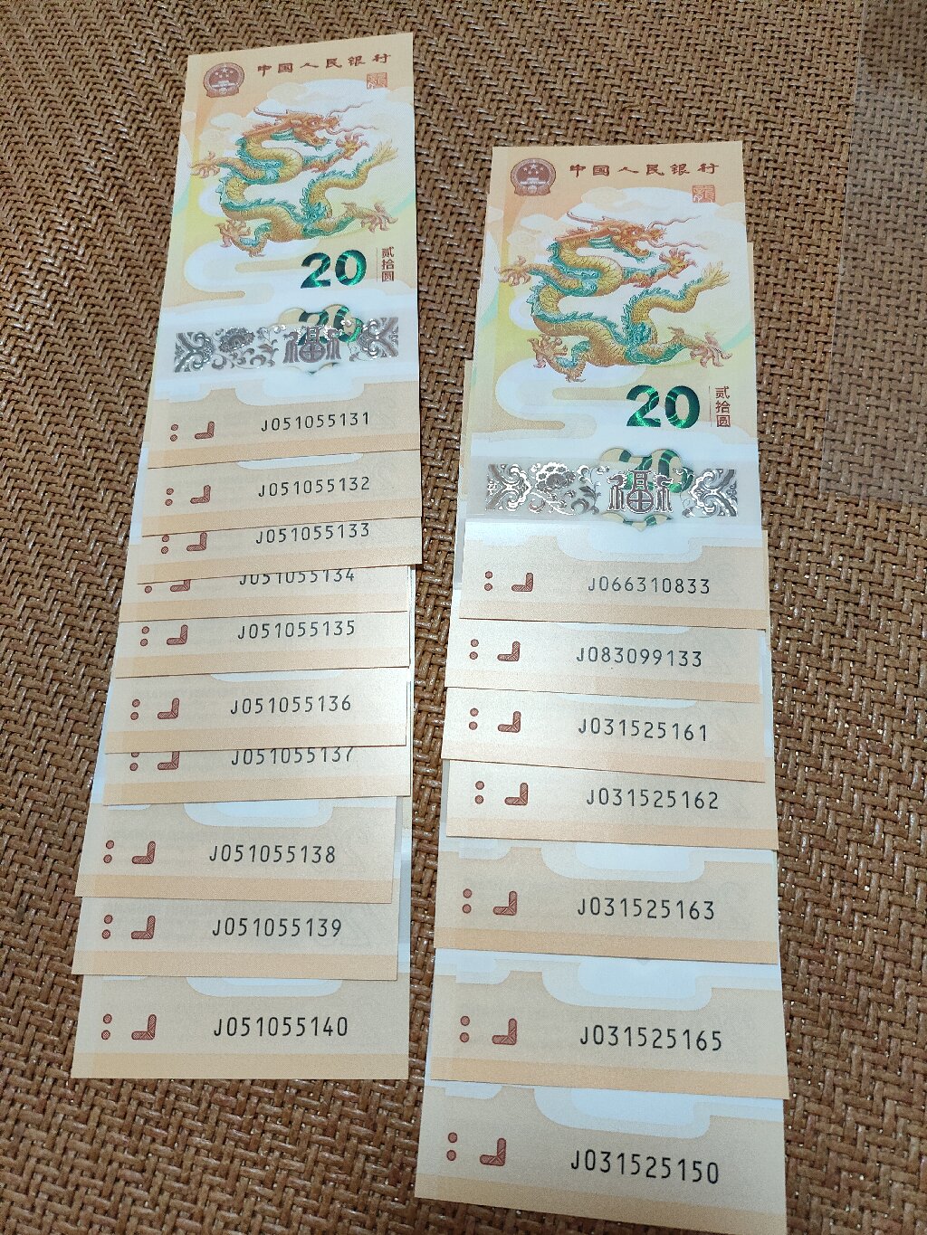 如题。出小龙钞无47一组。1230一组。散张7张。尾3一张100,尾33两张108一张,其余四张130元一张。通走包顺丰!