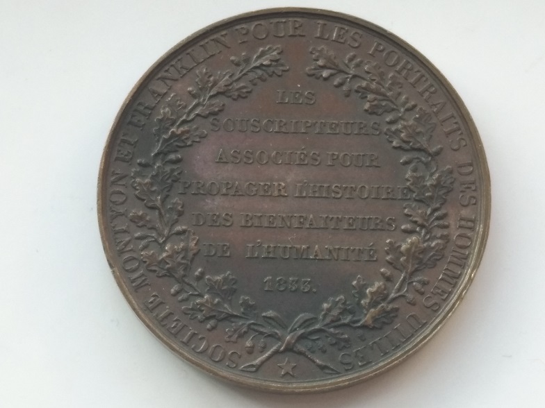 1833年法国富兰克林和蒙蒂恩协会铜章