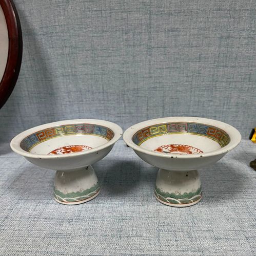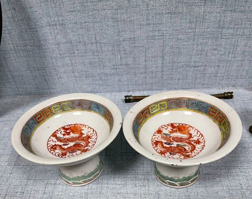 → 晚清龙纹高足碗一对 全品难得