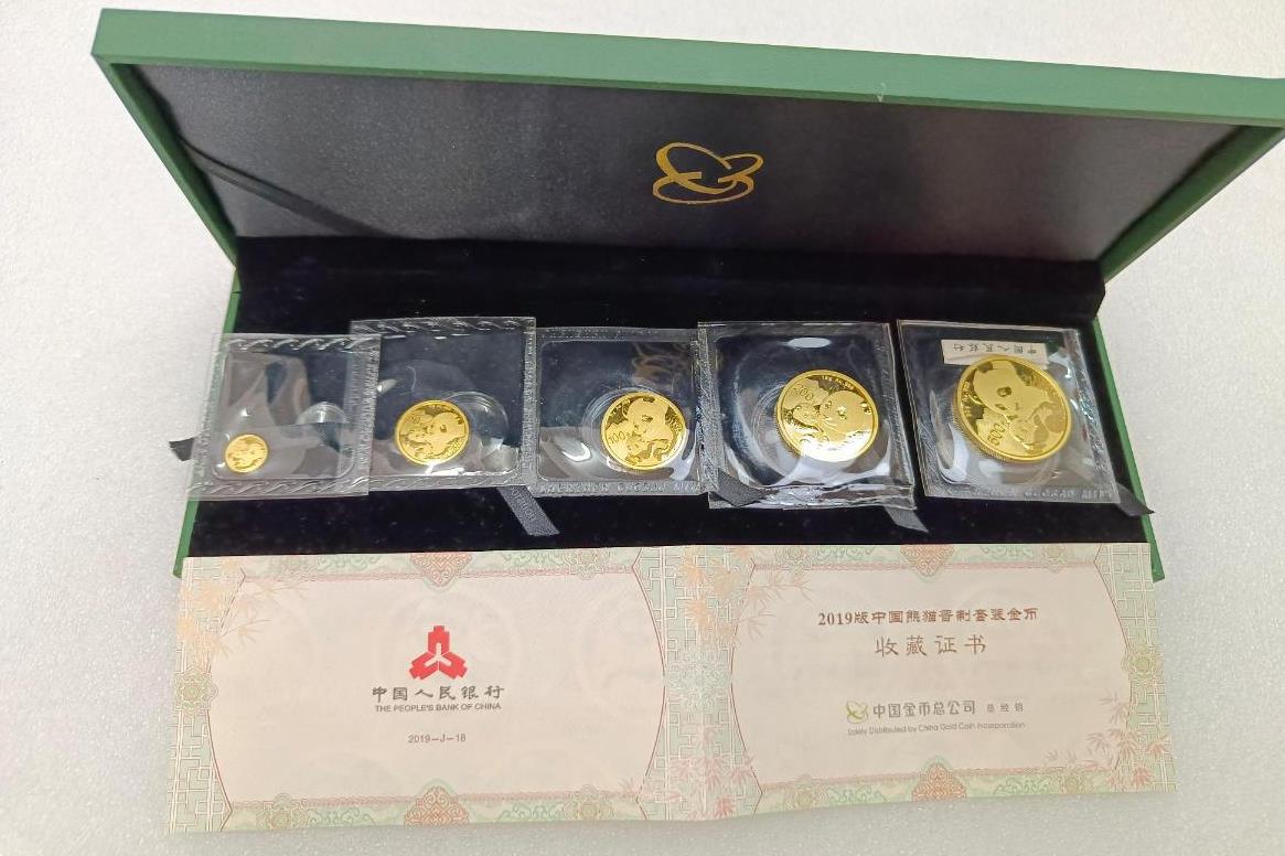 2019年熊猫金币1套5枚,原封带盒子证书,接近金价卖了。