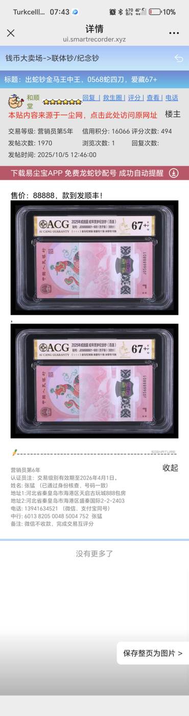 免责声明: 本站所有交易发帖内容,均是为了更好地服务和方便本站用户。本站不保证所有信息、文本、图形、评分、链接及其它项目的绝对准确性和完整性。凡未采用本站中介交易的,被骗后果自负。