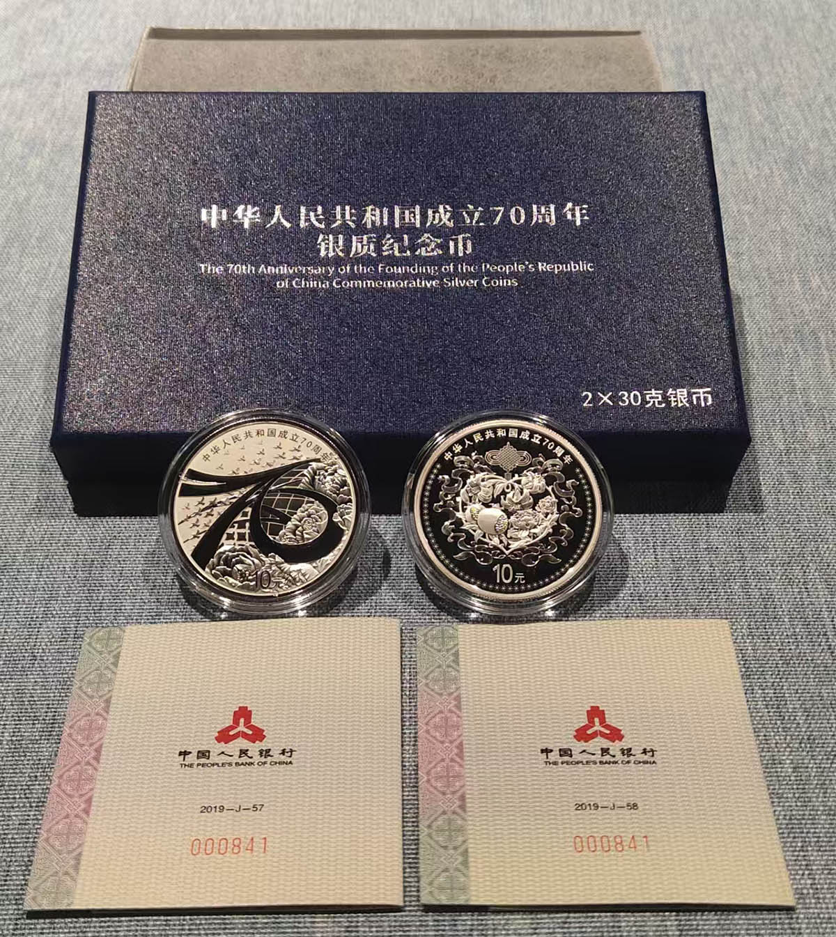 19年建国70周年银币一套,号码