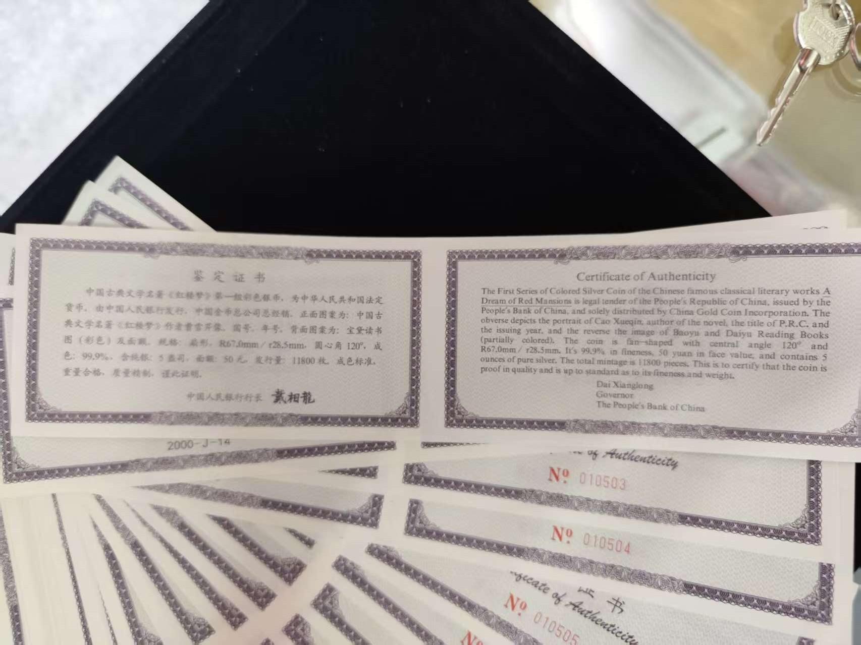 卖出红楼梦1组5盎司彩银币100枚,证书百连无47。币无划痕无白斑。有多余100枚可挑选。有包装盒