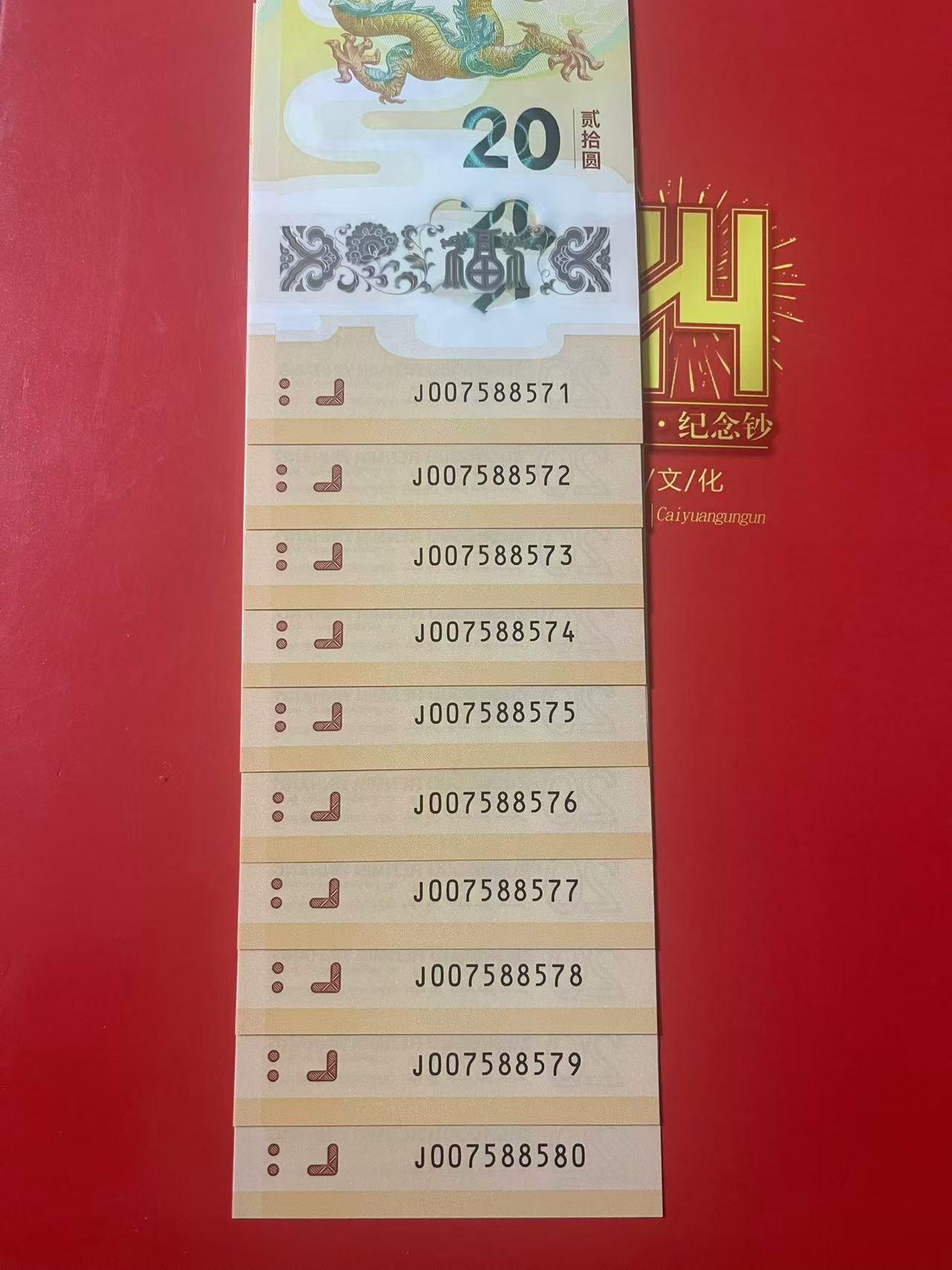 2024龙钞 007588571----007588580 飞马、飞马王、 标十 3580元
