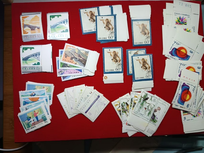 气象部分微黄,18一套,共3套。东北虎,部分微黄,17元,共6套。益鸟微黄,20元一套,共2套。长城部分微黄,46.。