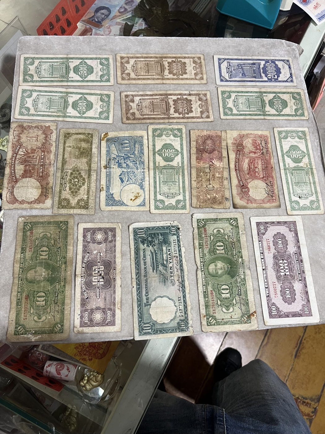 中央银行金圆券伍拾萬圆等18张民国币,内含中央银行壹佰圆豹子号777一张,都是原票,一起608元