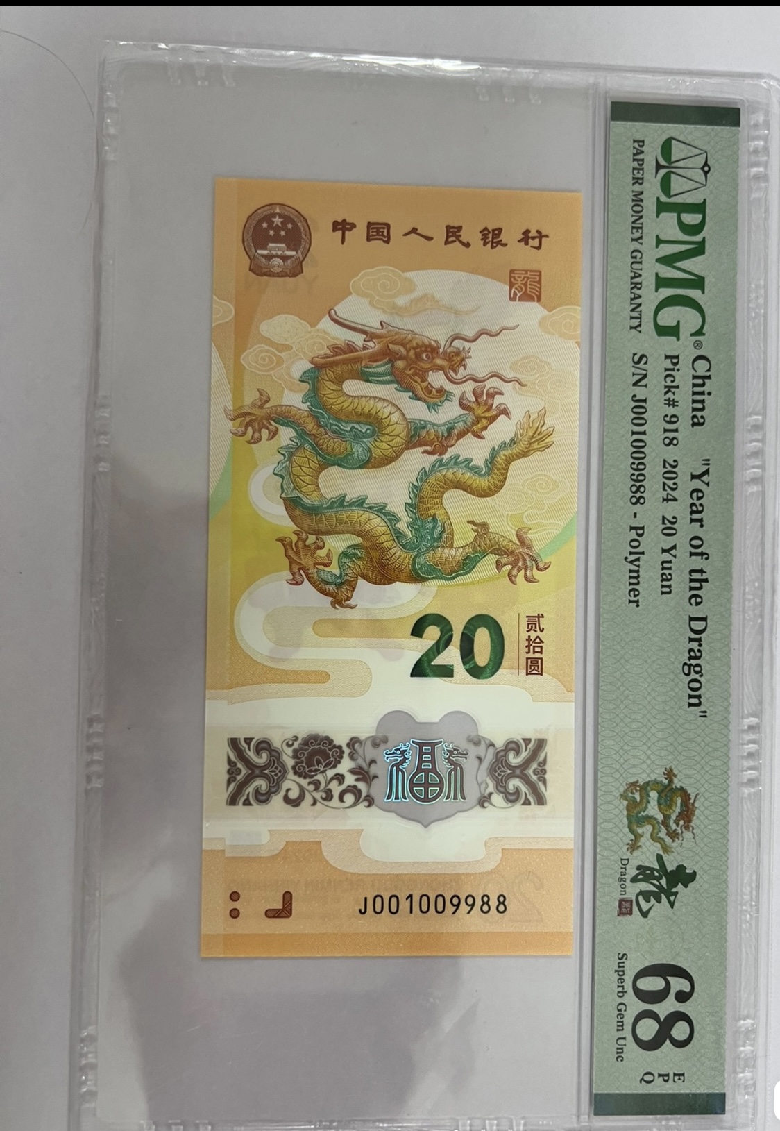 小龙钞倒置号4对半0198组合号码为:001009988pMG评分68分售8800元包邮。
