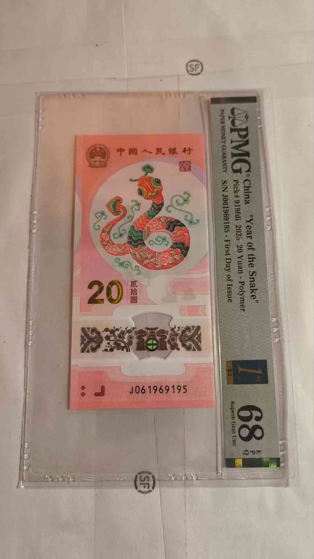 出蛇钞首日金兰标pmg68分满号倒置号尾95