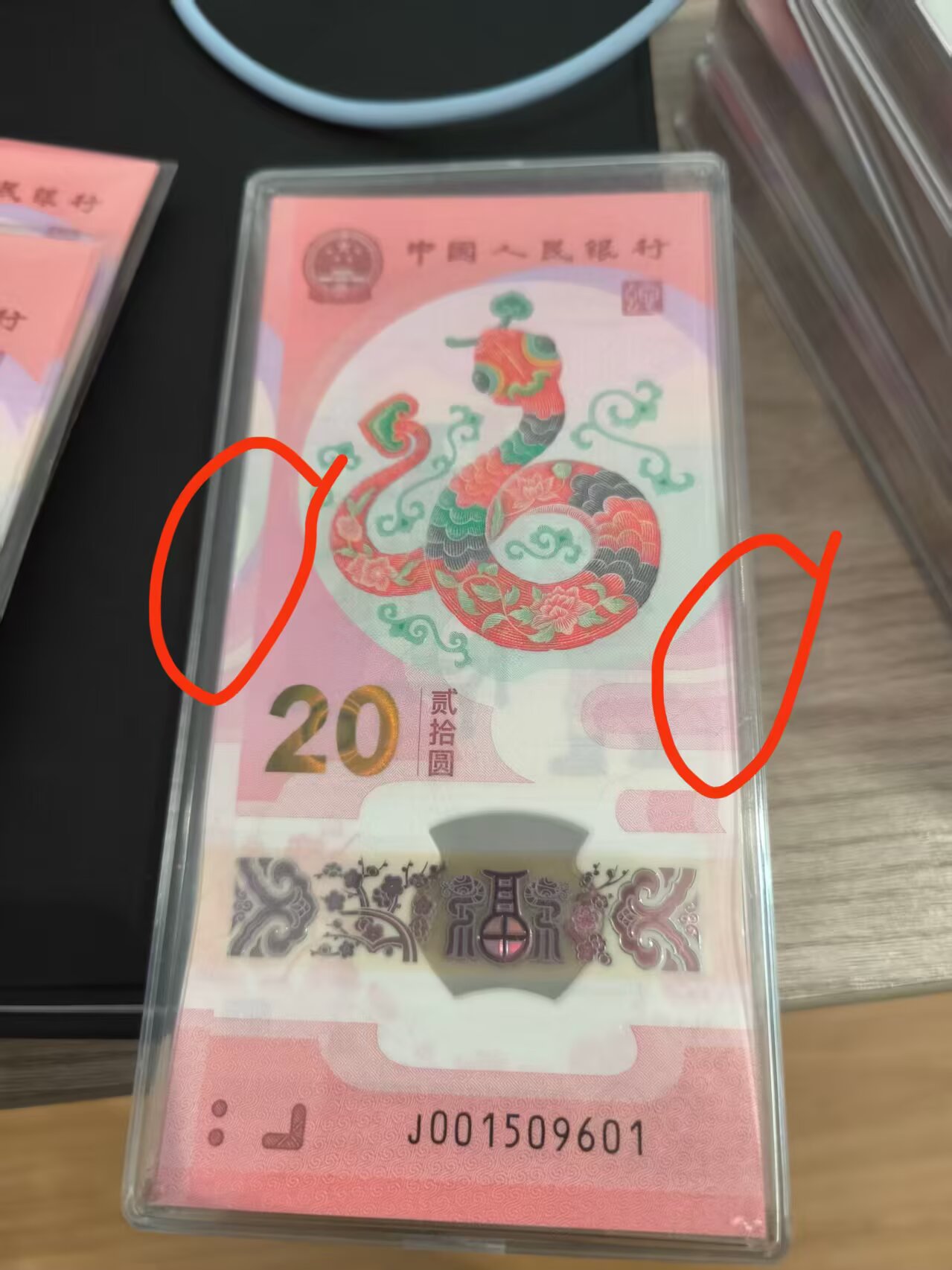 两刀都是银行原始品相,拿出来前面几张有点翘边