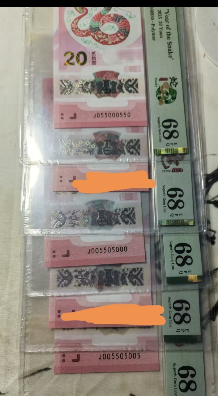 出蛇钞05蛇二组合!pmg68分! 号码:055000550大雷达!12000元 号码:005505005 8288 号码:005505000 9900 号码:000550020 ,3580 走一尘款到发货!
