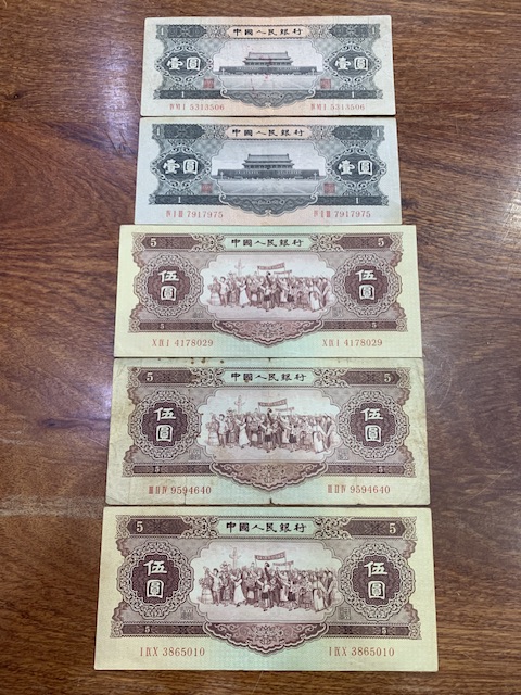 3500打包出3张原票黄五元、2张黑一元