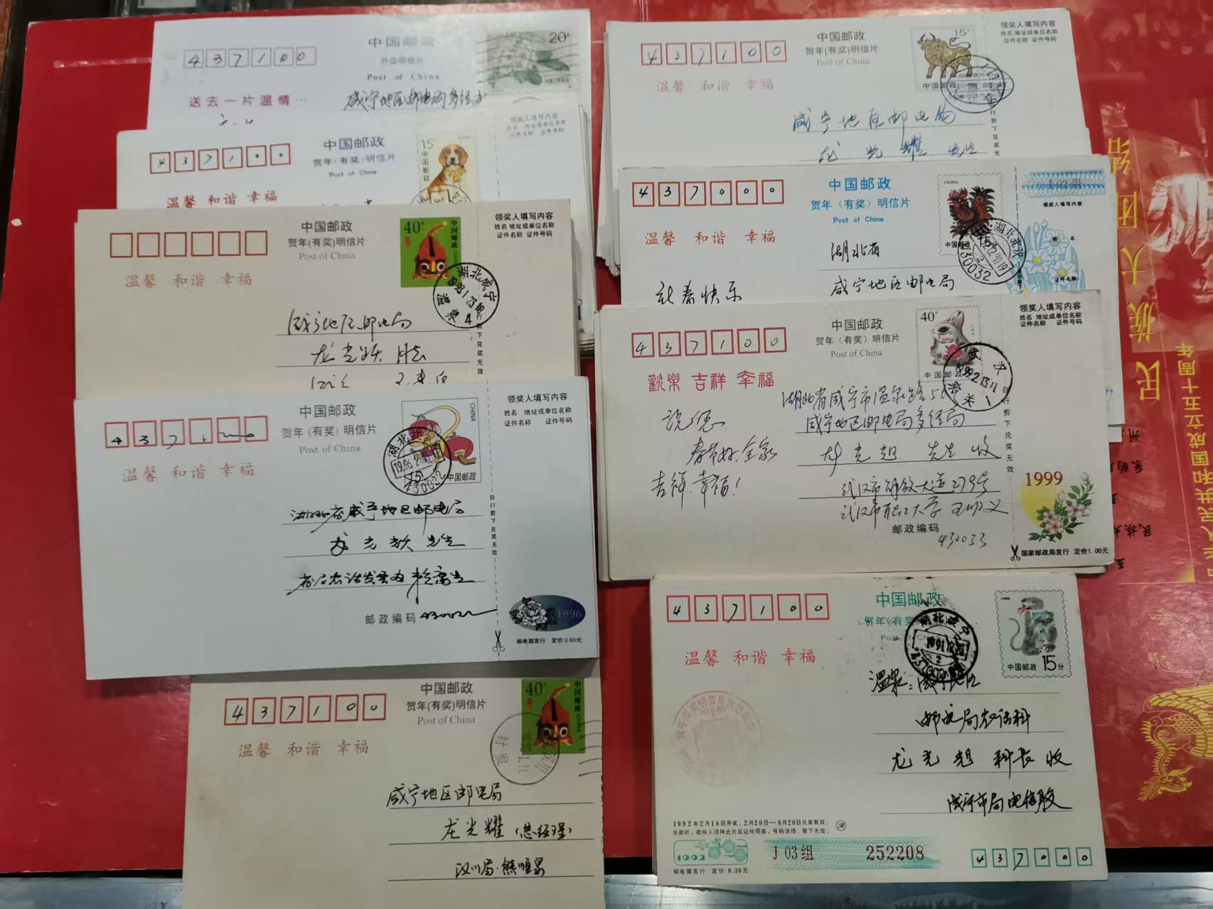 实寄普票封7个、编年封15个、JT封15个、贺年片174个