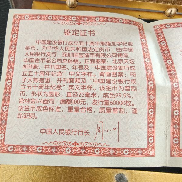 → 04年加字熊猫金币四分之一盎司7500元