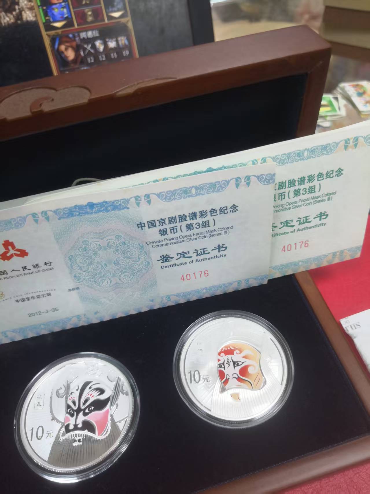 京剧脸谱1,2,3组彩银币,第三组有一个(见图)有氧化,其他全品,价一起2500元