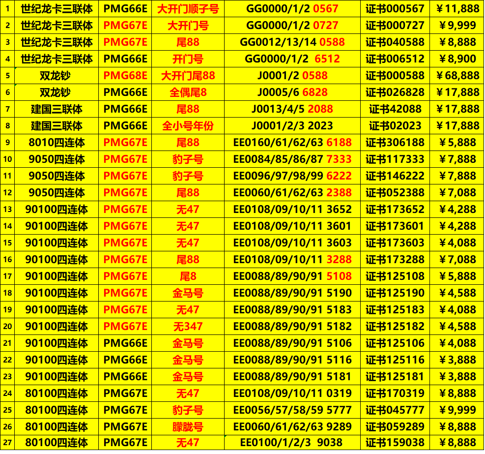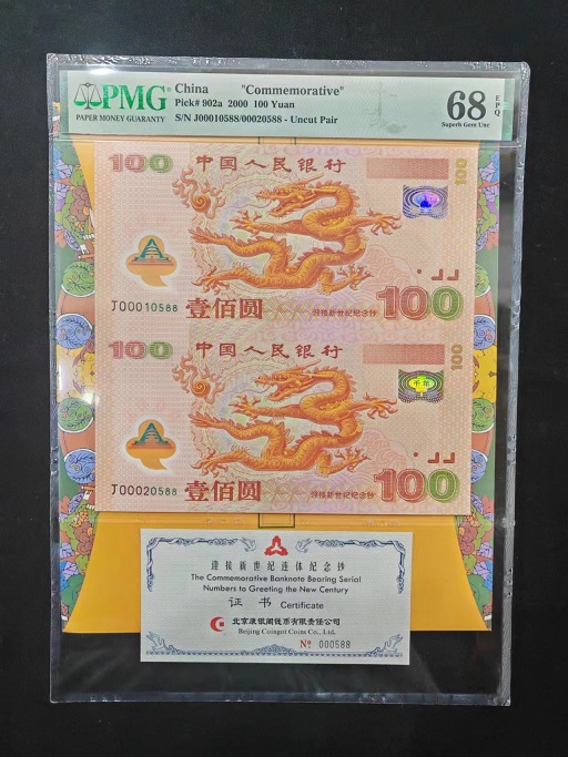 → 双龙钞 世纪龙卡 建国三联体 80100 90100四连体 PMG评级靓号