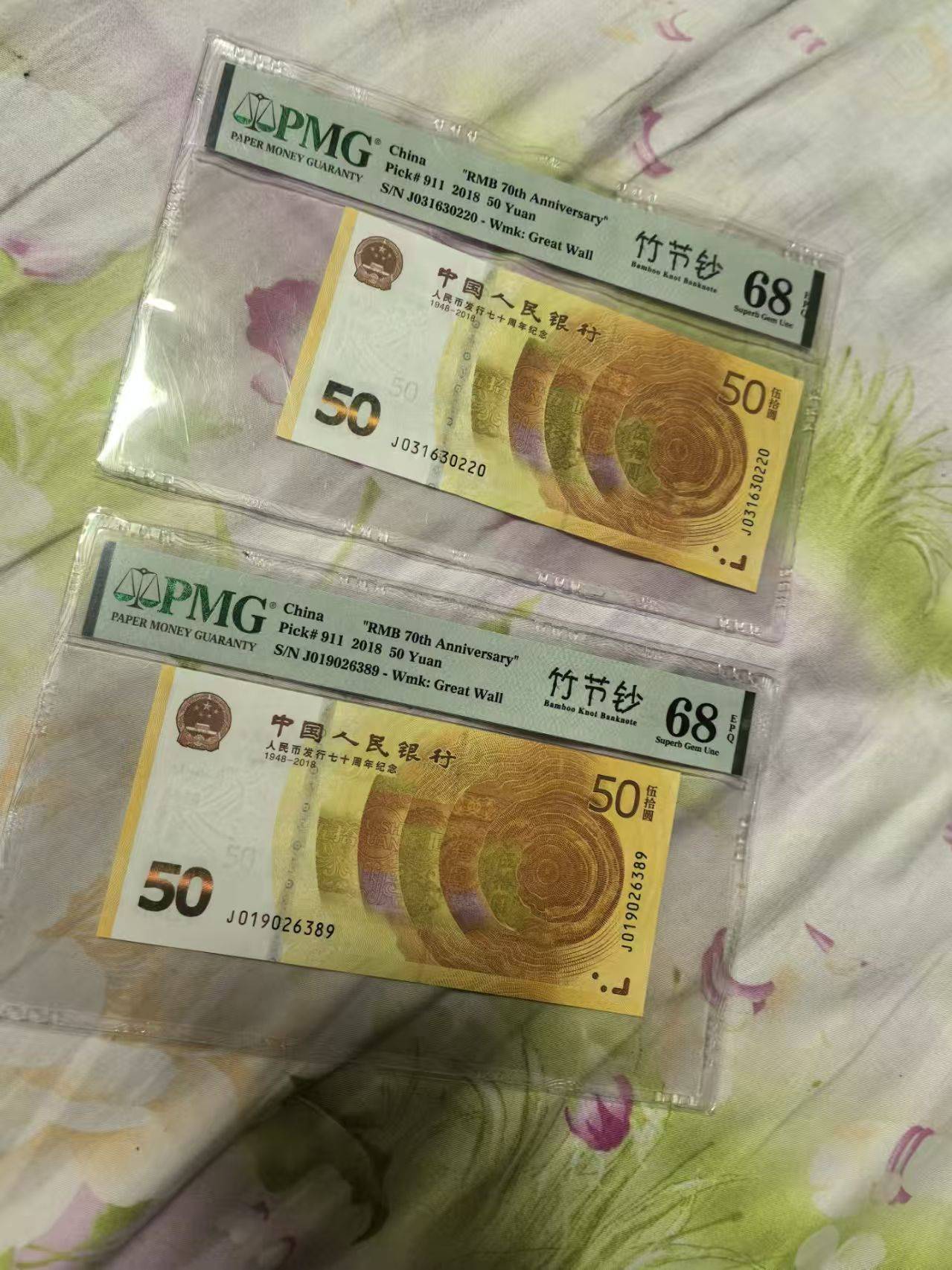 → 出竹节钞,PMG评级中文标竹节钞,70周年纪念钞