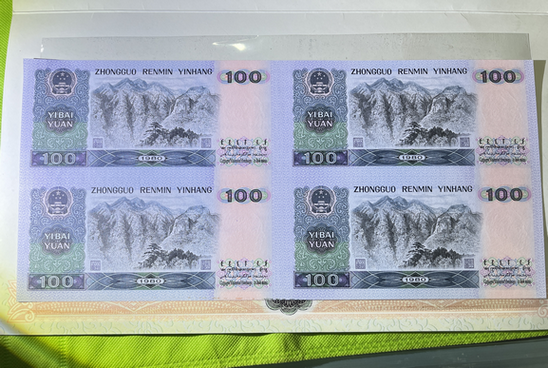 80100四联体一本,全新无折,强光及荧光灯下图已拍,灯下无斑,背面最下处有点双面胶痕迹,清除一下即可!