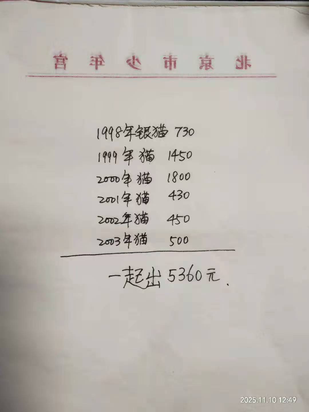 银猫98~03各一枚,全品,一起出5360元,不议价!