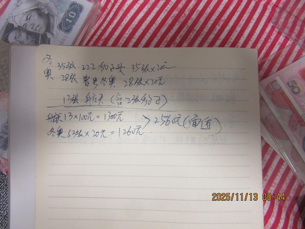 冬奥63张*20元,含豹子头的35张,航天13张*100元,含2张豹子。面值2560元,加100元包顺丰