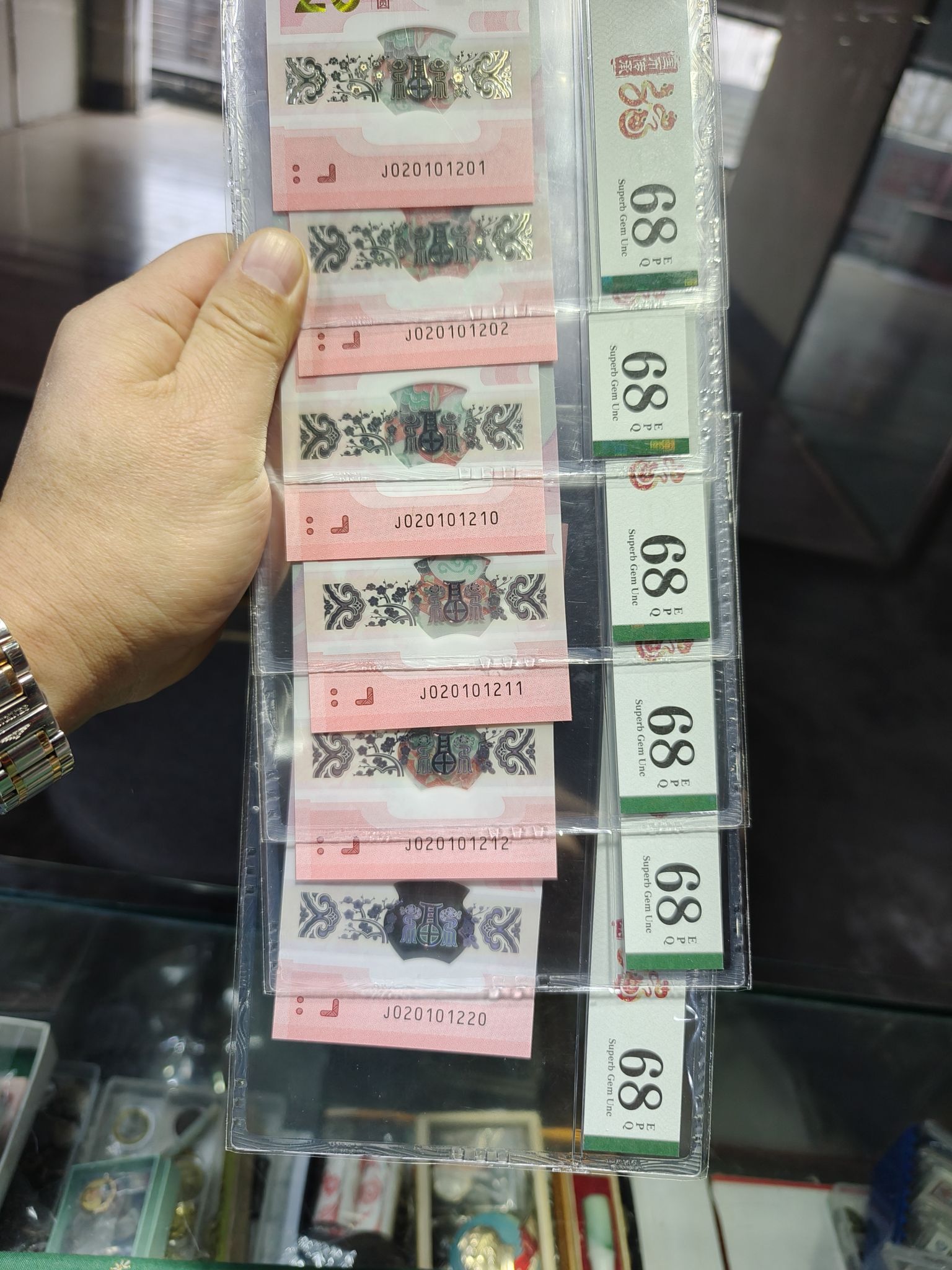 6张蛇钞小号012组合Pmg68分(标准生日号)……通打1800/张