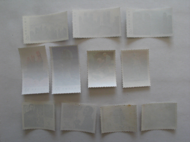 T39五业兴旺全品42元,T21从小锻炼13元,石林全品40元,J67鲁迅全品12元,J50白求恩全品10元,J11鲁迅两枚-1有黄,-2筋票正常好品,两枚45元