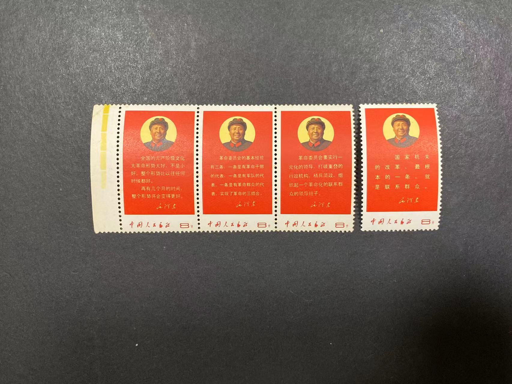 文10:共4枚新票,原票3横连,带色标,票身挺拔。原胶,微黄,第4枚另配,原胶,微黄。如图,售:6500元。有兴趣加微信转款。