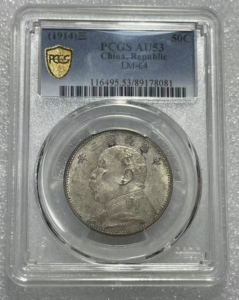 → PCGS AU53老包浆车轮光三年中圆大头