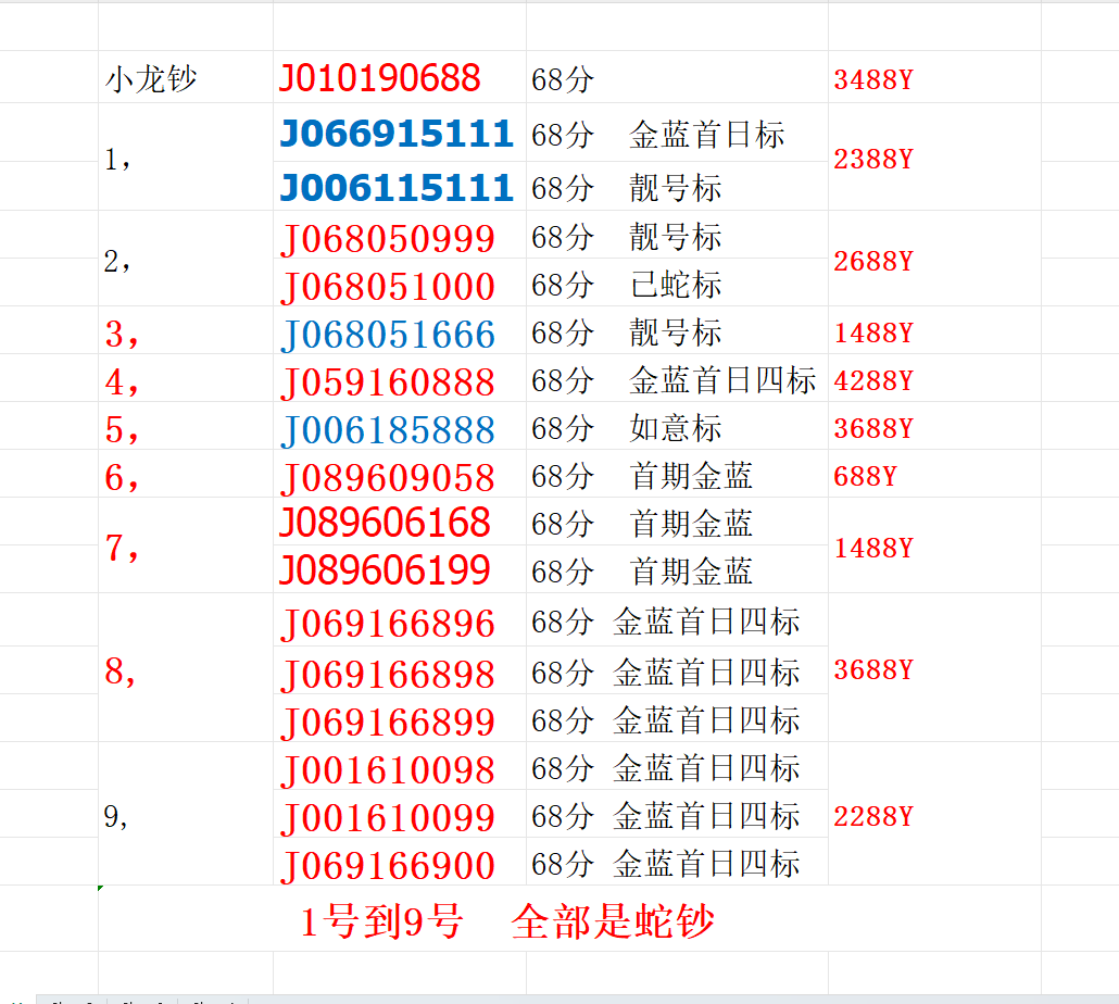 出小龙 倒置号88 跟蛇钞 倒置号 金马车 四标