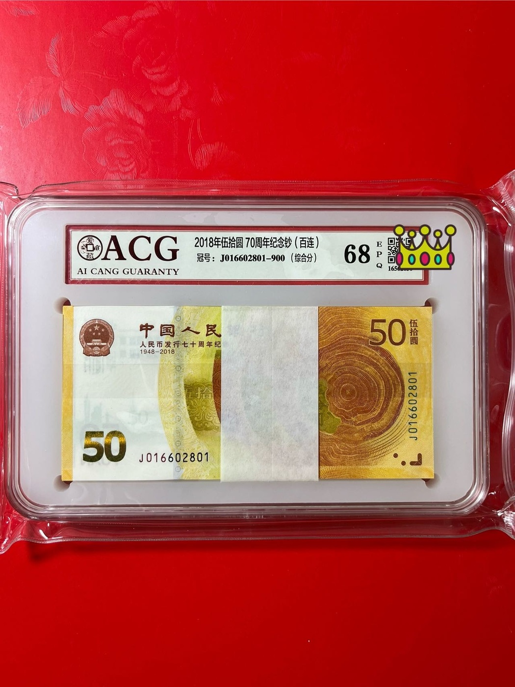 → 出70钞靓号,爱藏评级68分,标准百连刀