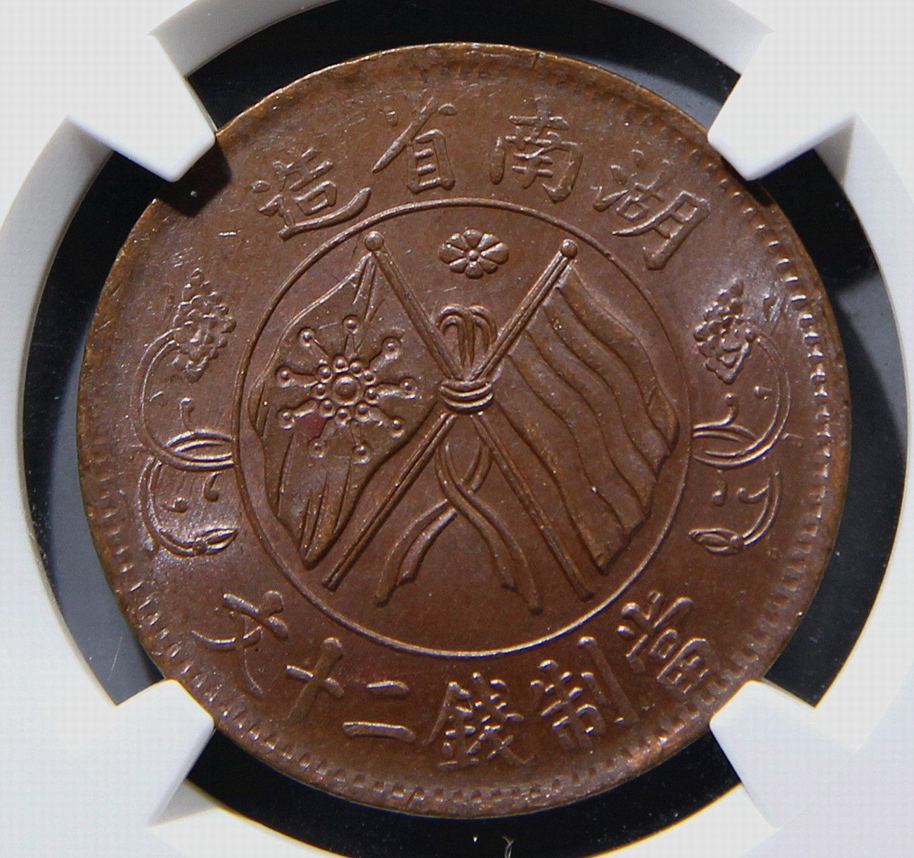 → 冠军分!仅23枚 NGC MS64湖南双旗二十文