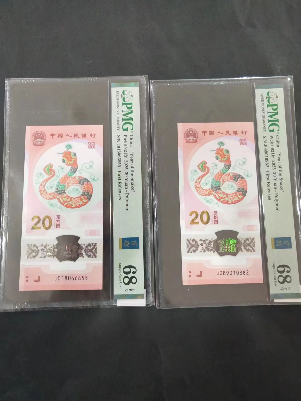 蛇钞金马和朦胧,PMG68各一张