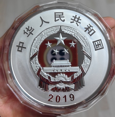 2019年建国70周年一公斤银币一枚,证书(4585)发行量1万,有证书盒子,22000元